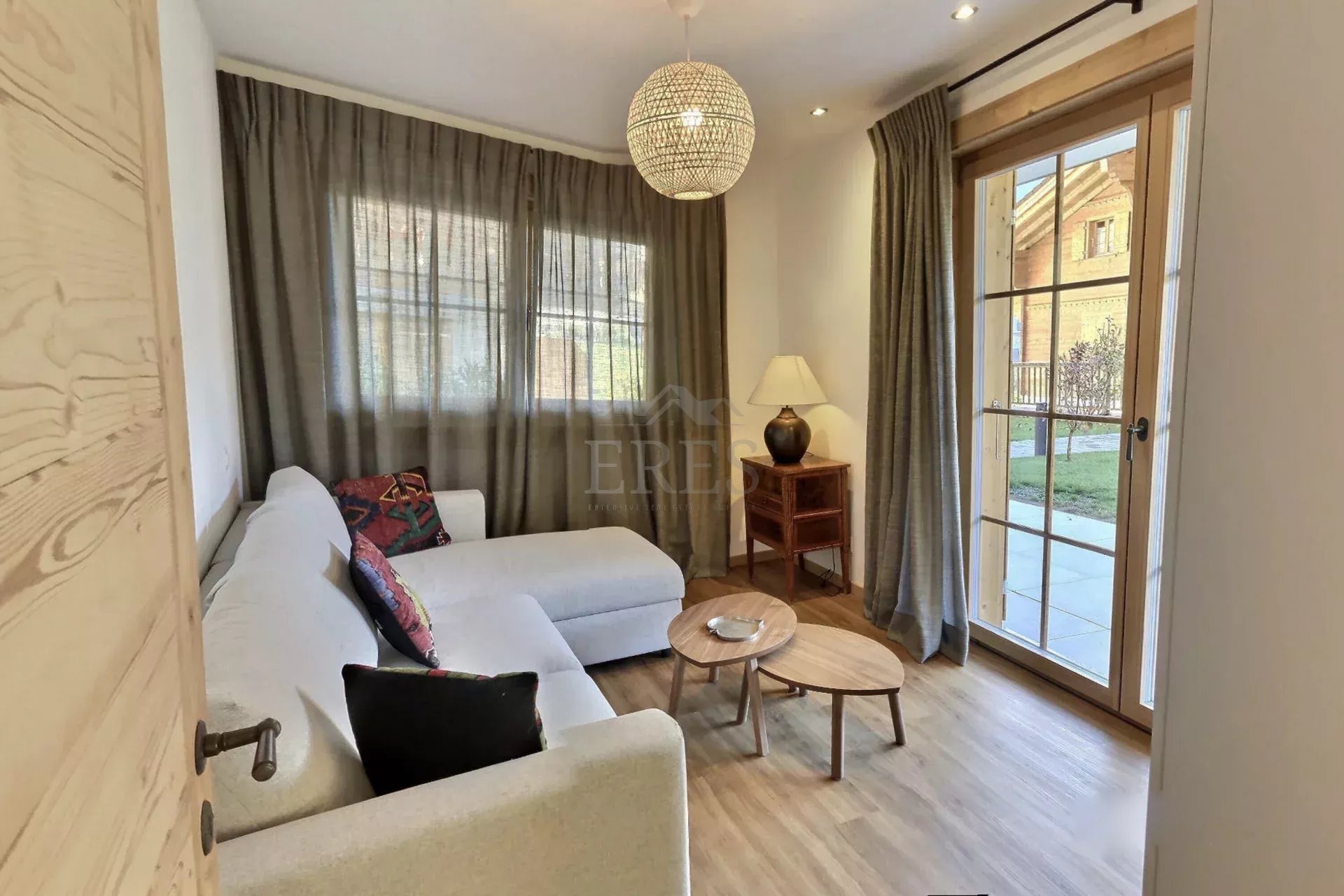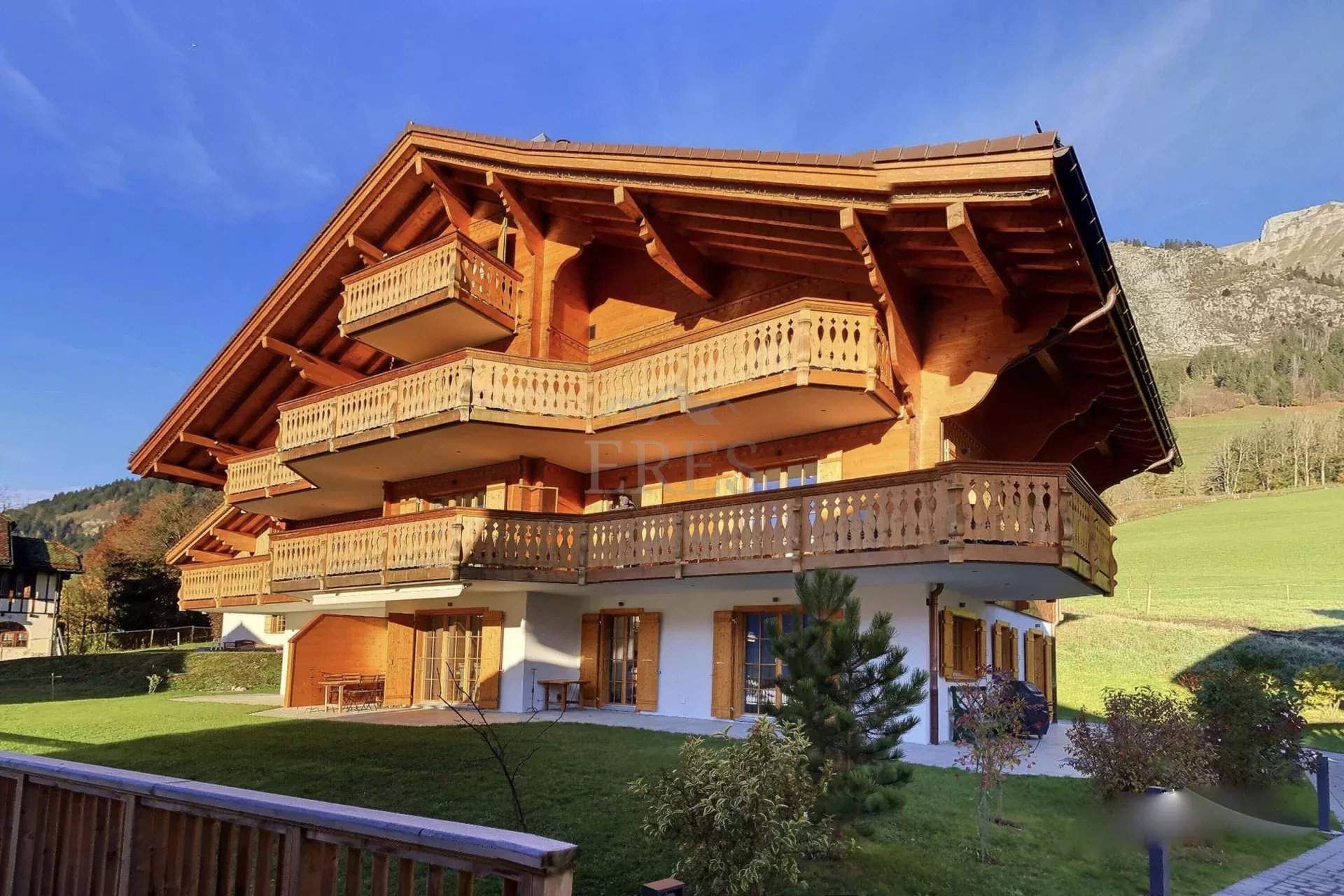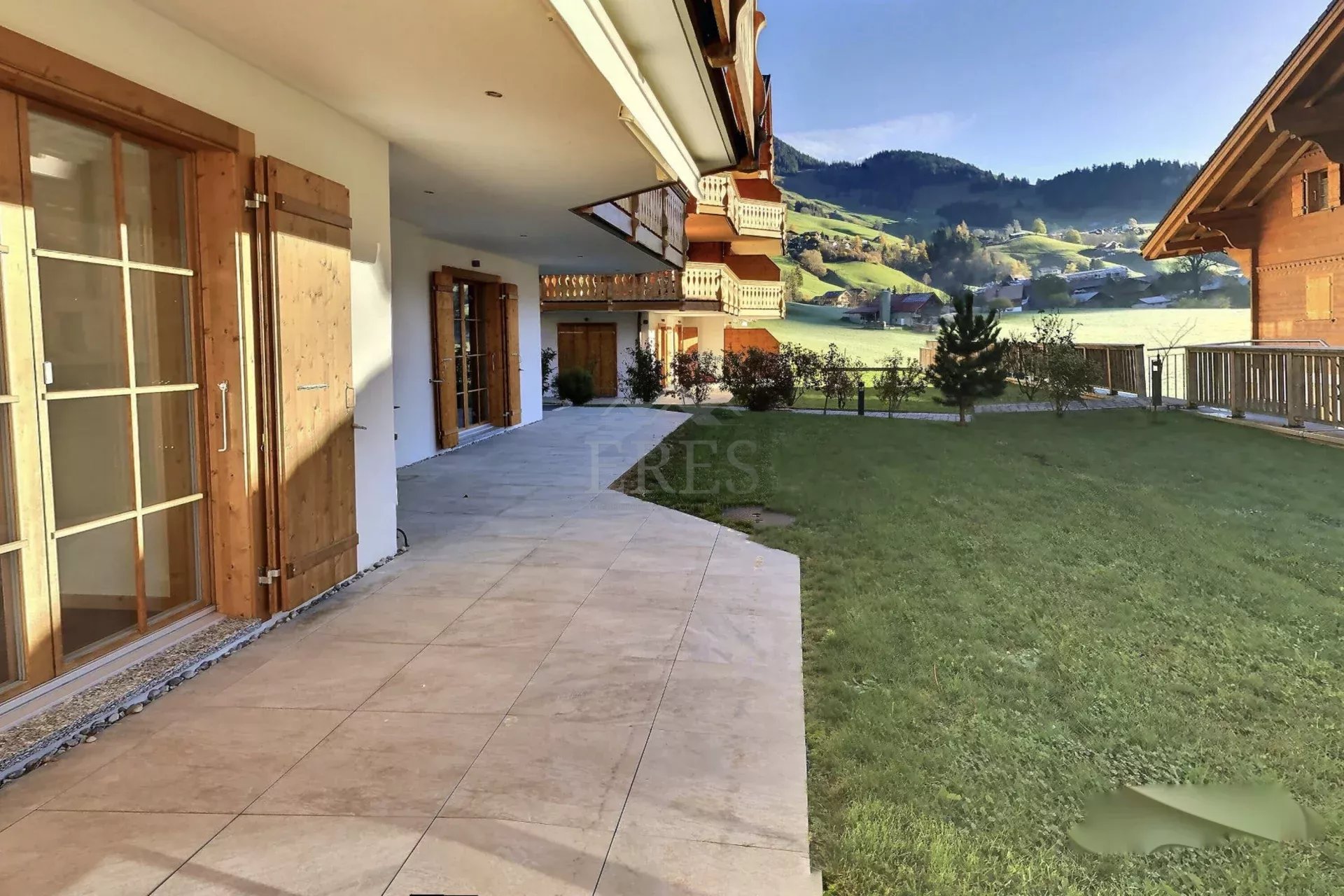 This elegant apartment, which enjoys a panoramic view of the entire valley, is located on the heights of the village of Château-d'Oex, just 2 minutes walk from the village center. The construction of the building is of 2022 and the apartment has an area of approximately 100m2.
