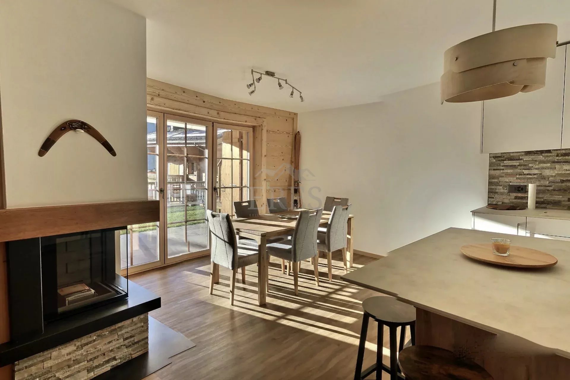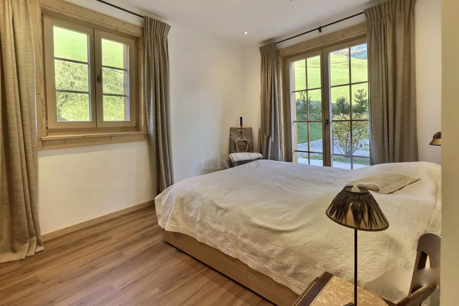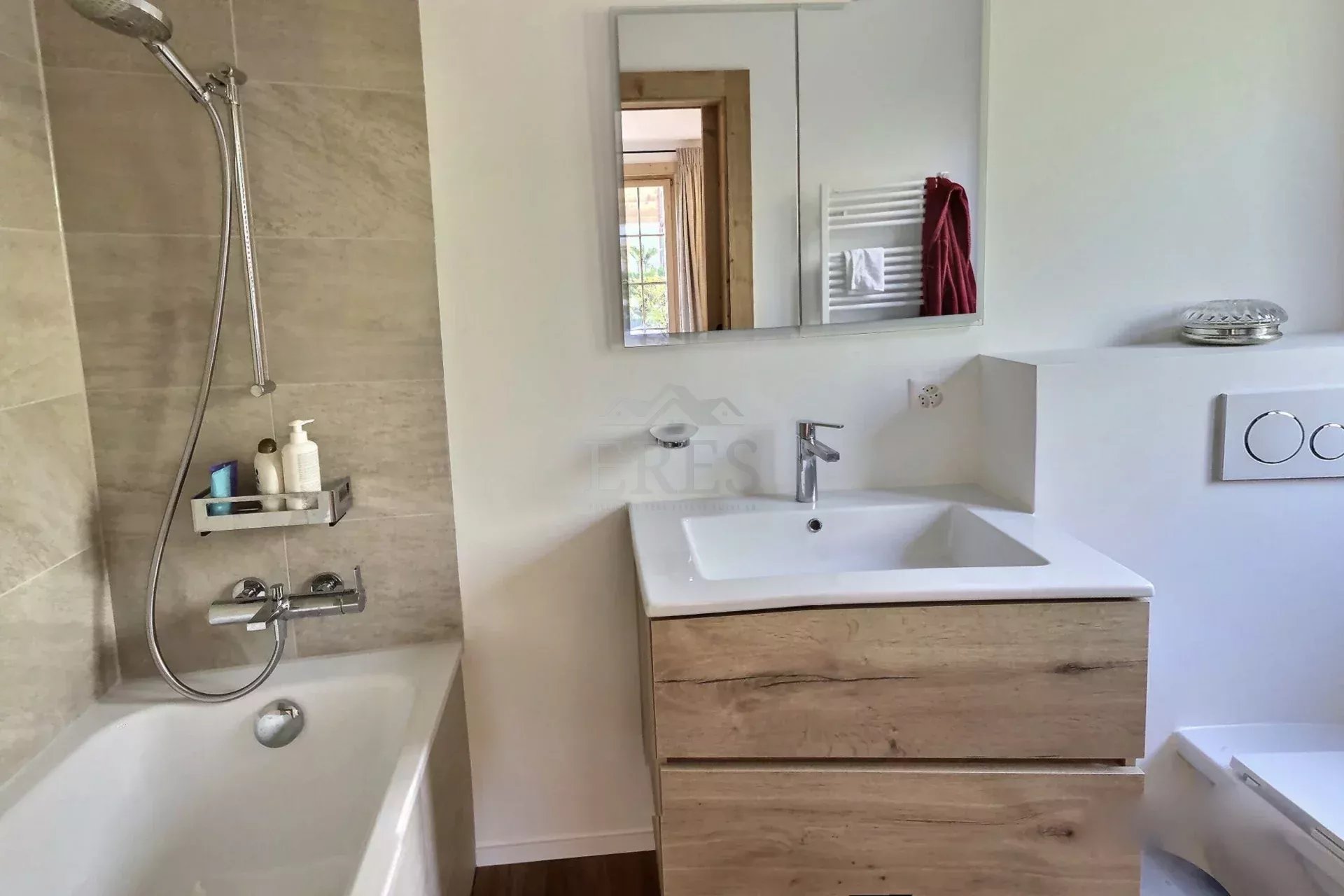This elegant apartment, which enjoys a panoramic view of the entire valley, is located on the heights of the village of Château-d'Oex, just 2 minutes walk from the village center. The construction of the building is of 2022 and the apartment has an area of approximately 100m2.
